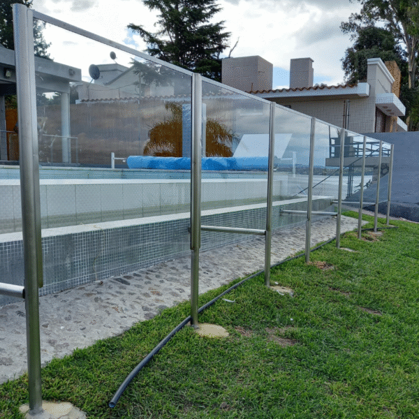 Baranda paraviento para piscina | Vidrio e inox