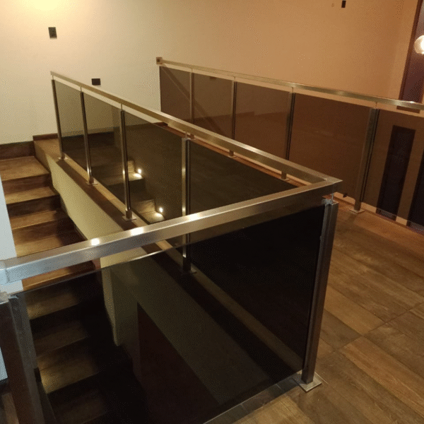 Baranda de Vidrio y Poste Acero Inox Cuadrado