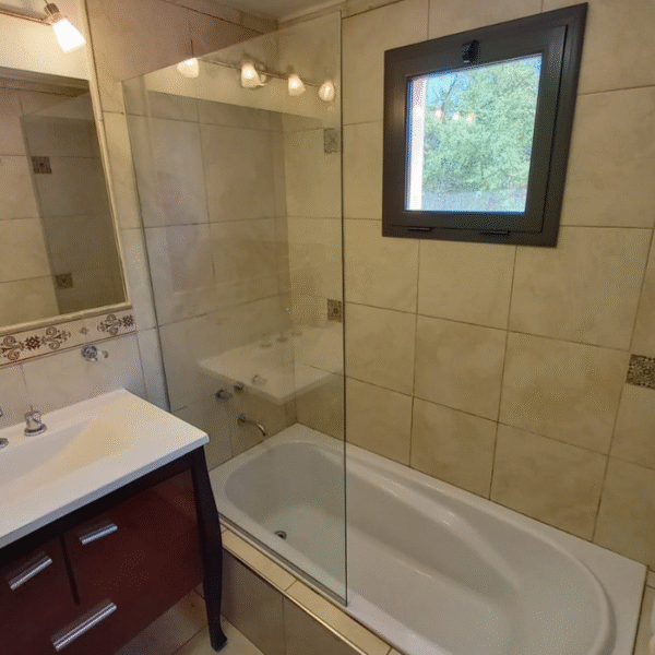 Borde de bañera recto y nivelado, y muro firme para fijaciones. El vidrio templado no admite perforaciones ni cortes posteriores.